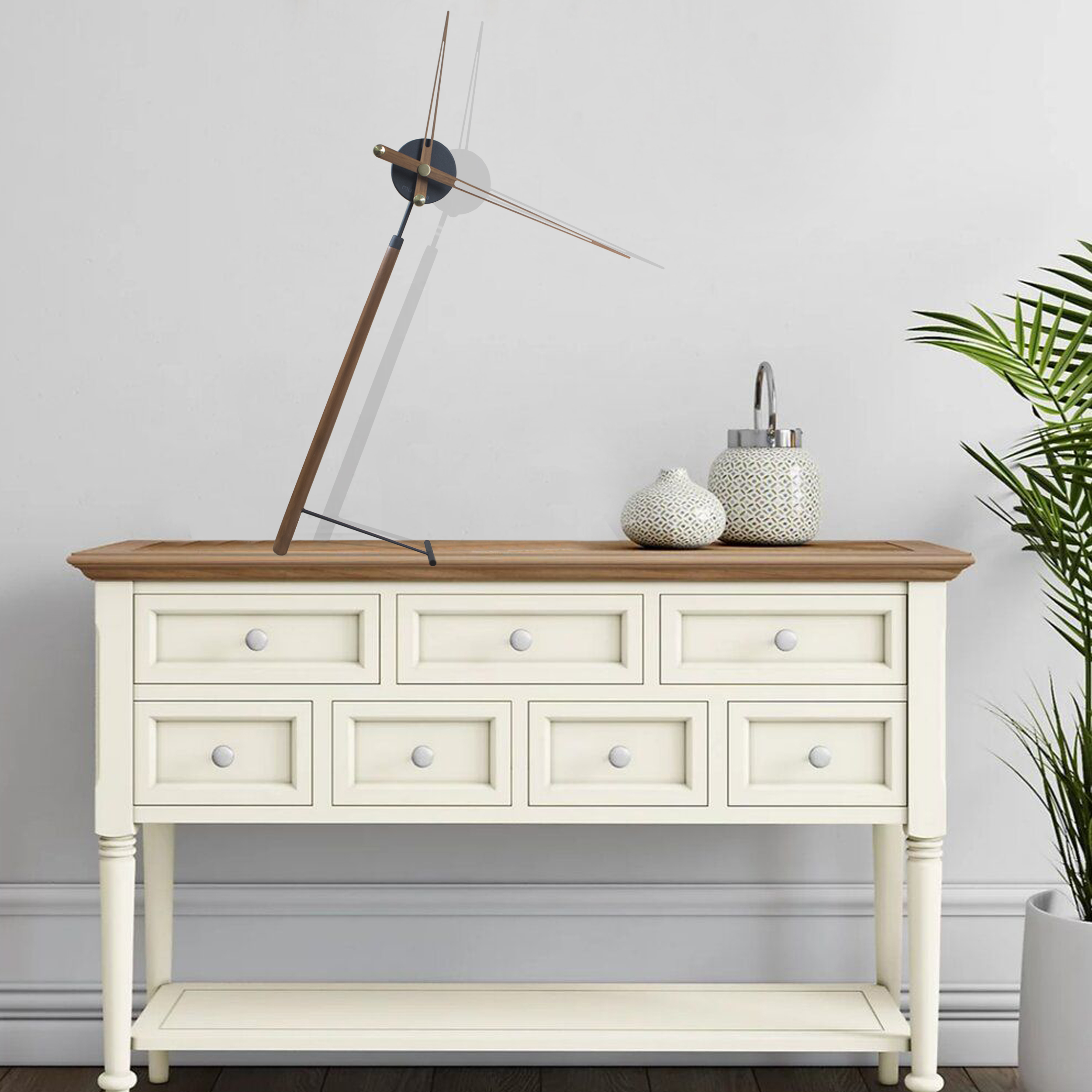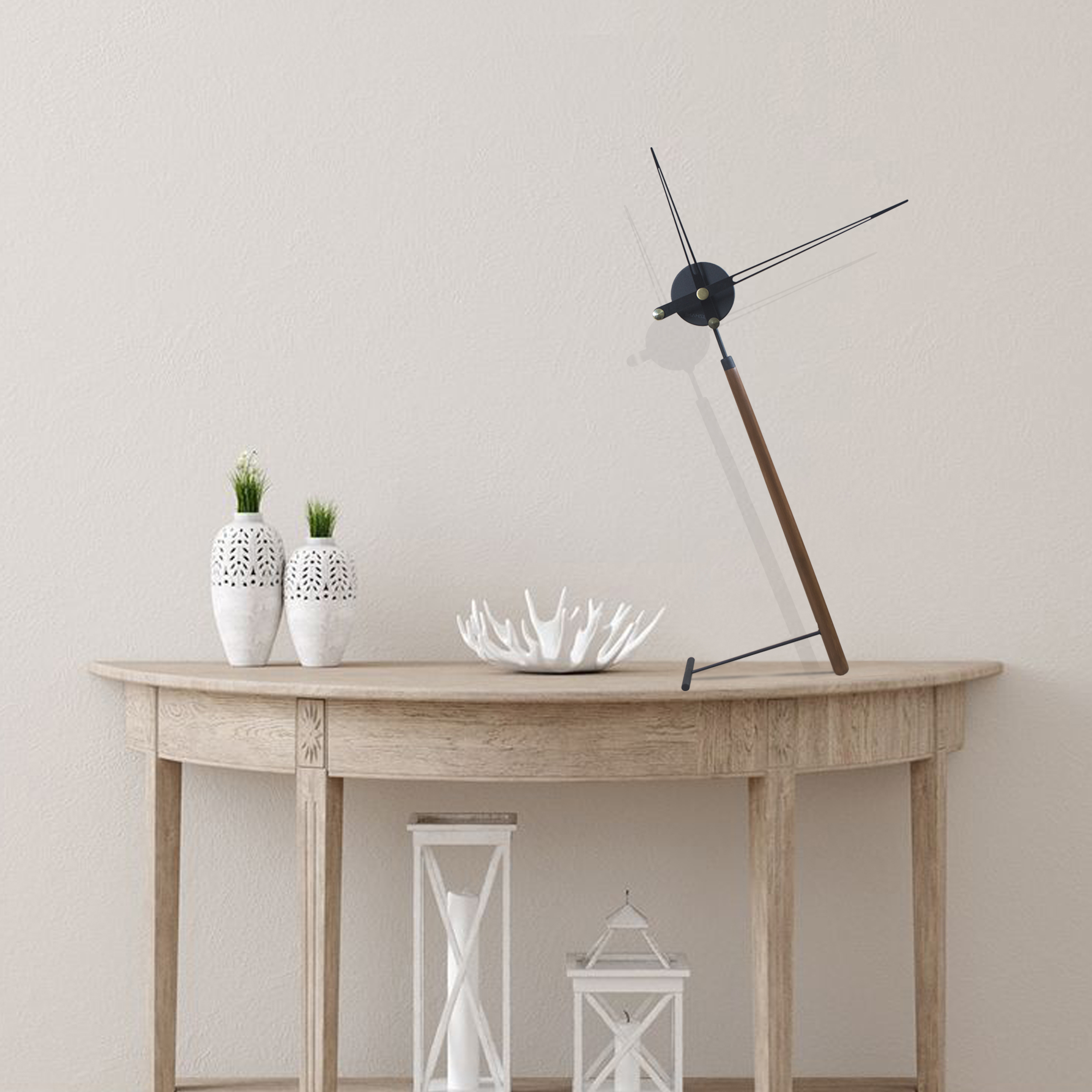 ساعتی با طراحی مینیمال و خلاقانه و خاص که بر روی کنسول ، شلف و سایر مکانها قابل استفاده می باشد